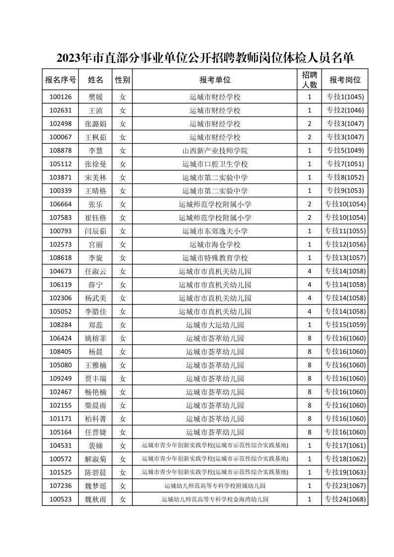 附件: 2023年市直部分事業(yè)單位公開招聘教師崗位體檢人員名單